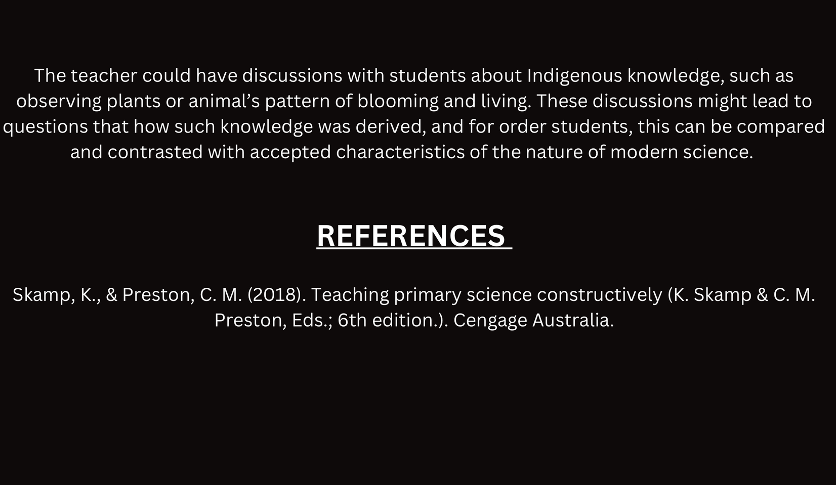 Skamp, K., & Preston, C. M. (2018). Teaching primary science constructively (K. Skamp & C. M. Preston, Eds.; 6th edition.). Cengage Australia.